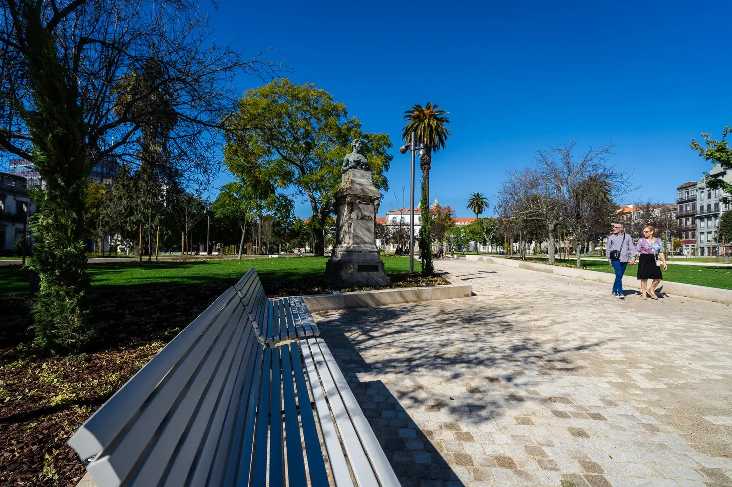 A intervenção incluiu, ainda, o reposicionamento das estátuas já existentes — como a escultura Baco, a estátua do General Pires Veloso e a do Padre Américo — e a reposição da escultura Rapto de Ganimedes, devolvida à Praça após anos no Jardim da Cordoaria. O espaço foi igualmente equipado com novo mobiliário urbano, incluindo papeleiras, bebedouros e bancos.